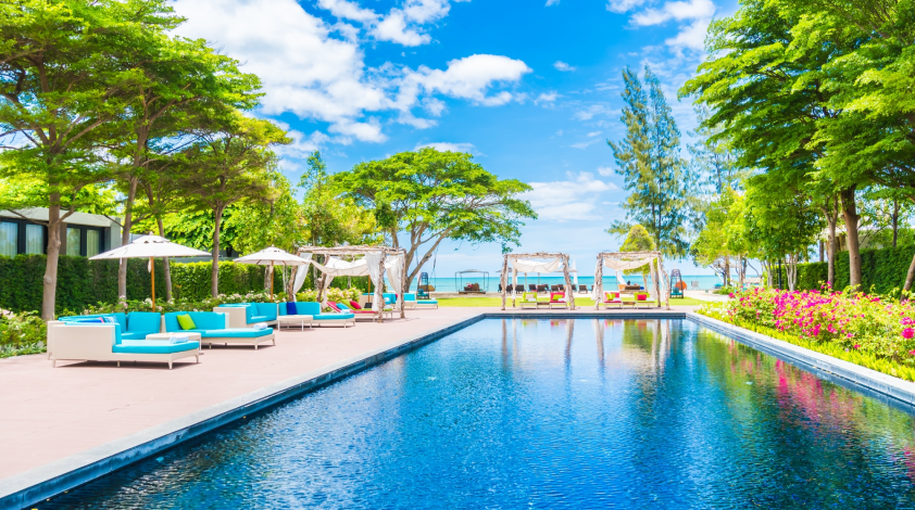 Update the design to attract more guests and create a modern, inviting pool area.